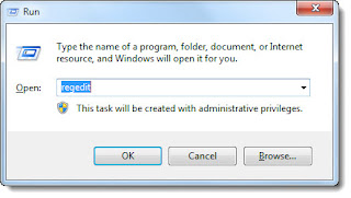Step1: In Windows 7 press Windows key+R and type as “regedit